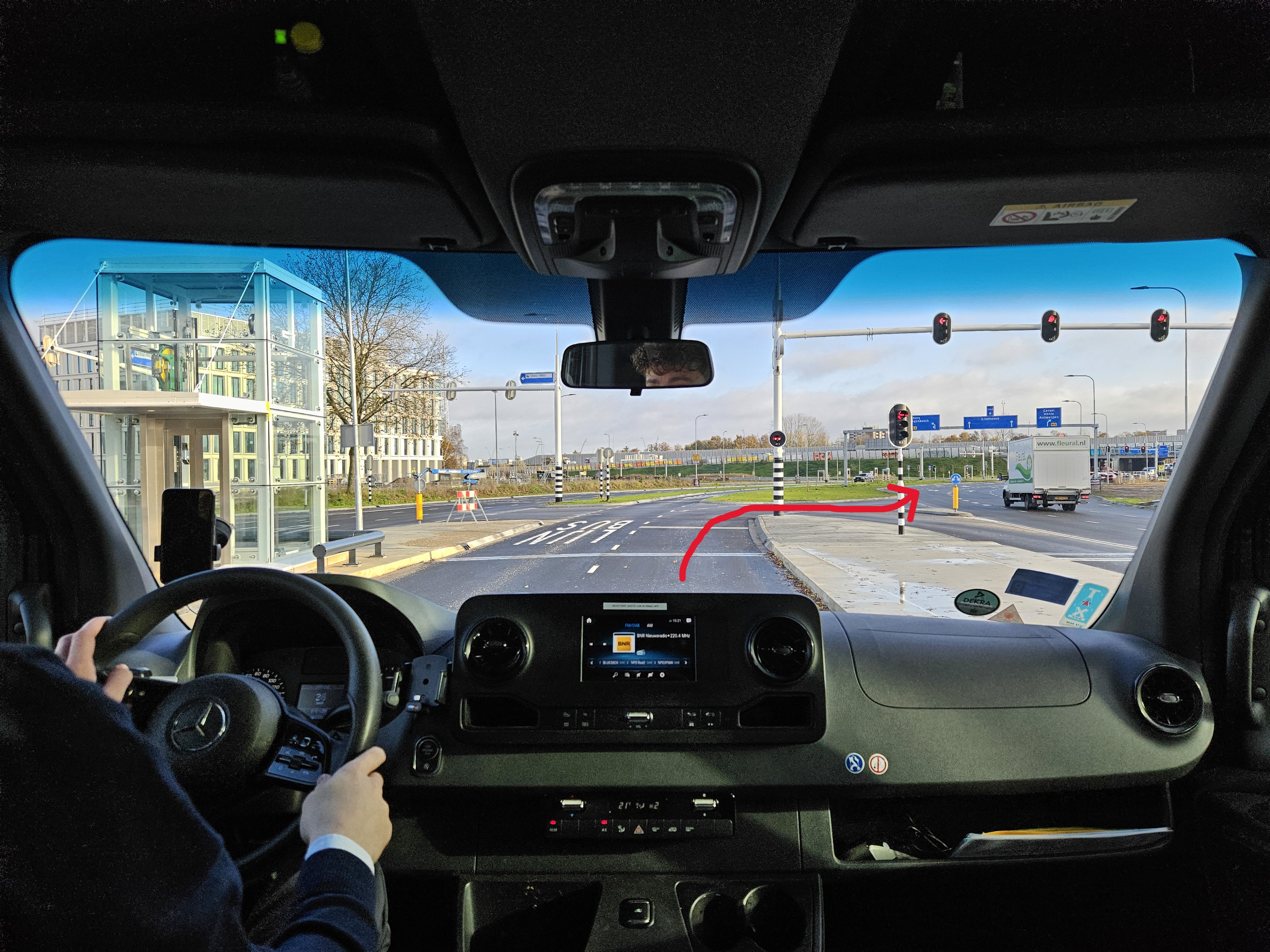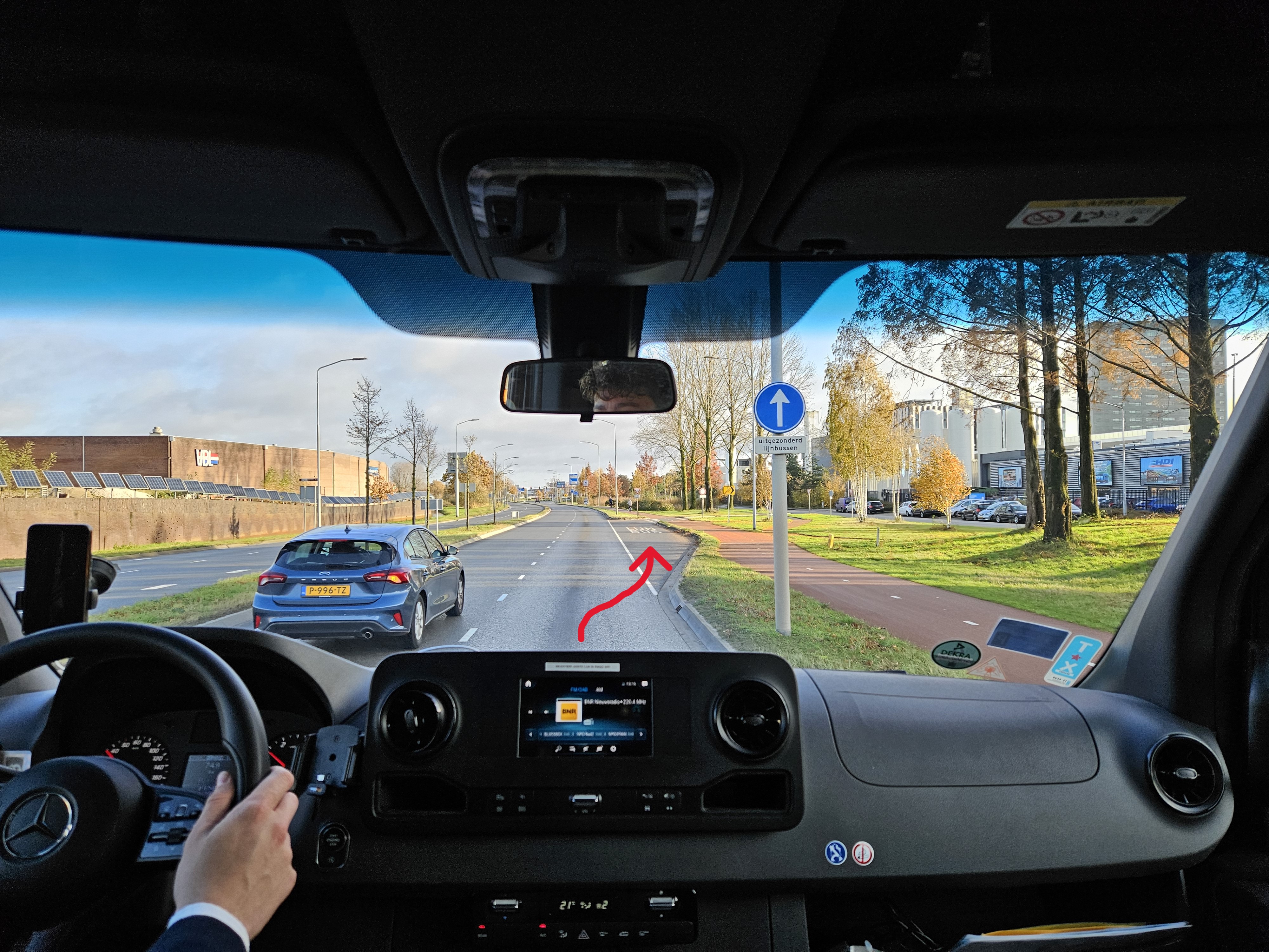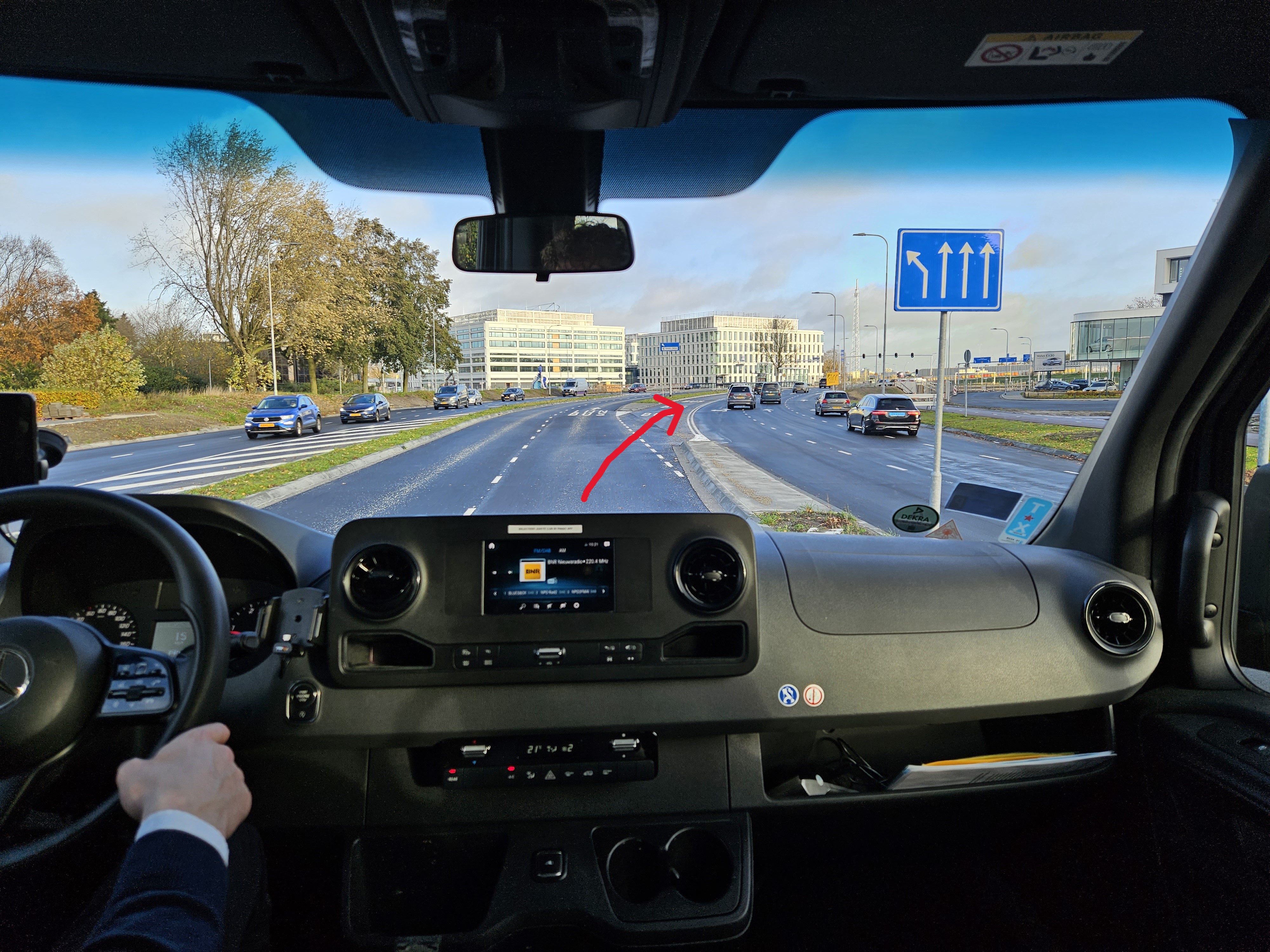 - Het voorsorteren bij het afrijden van de ASML campus.