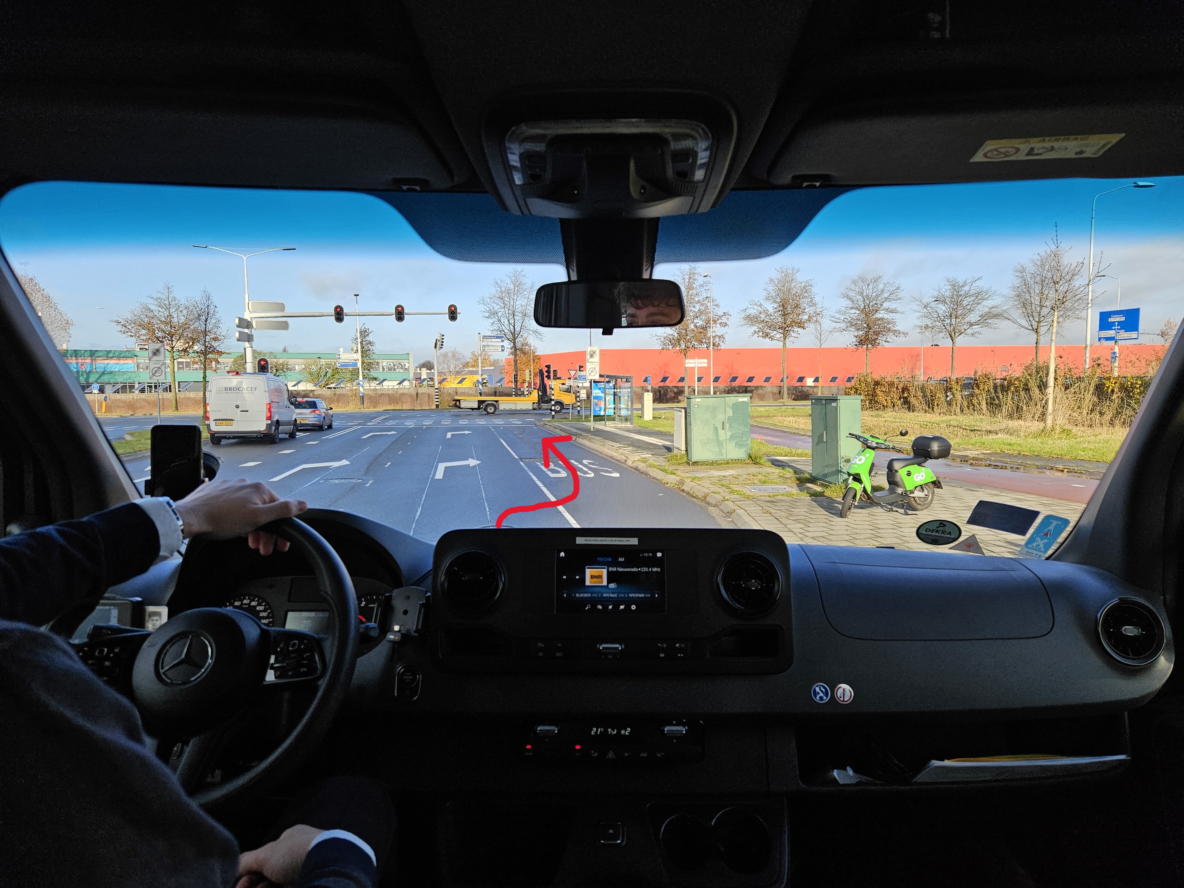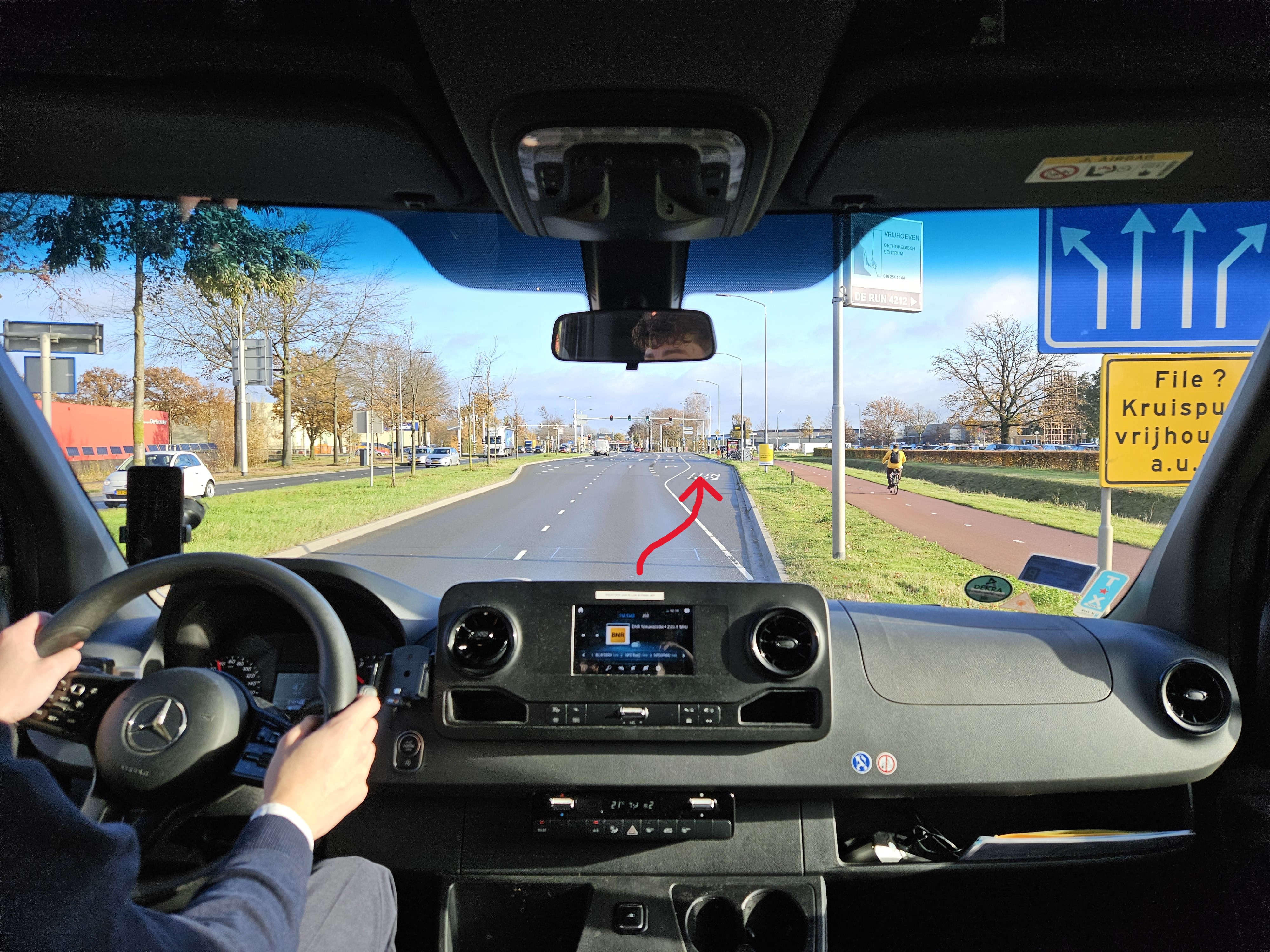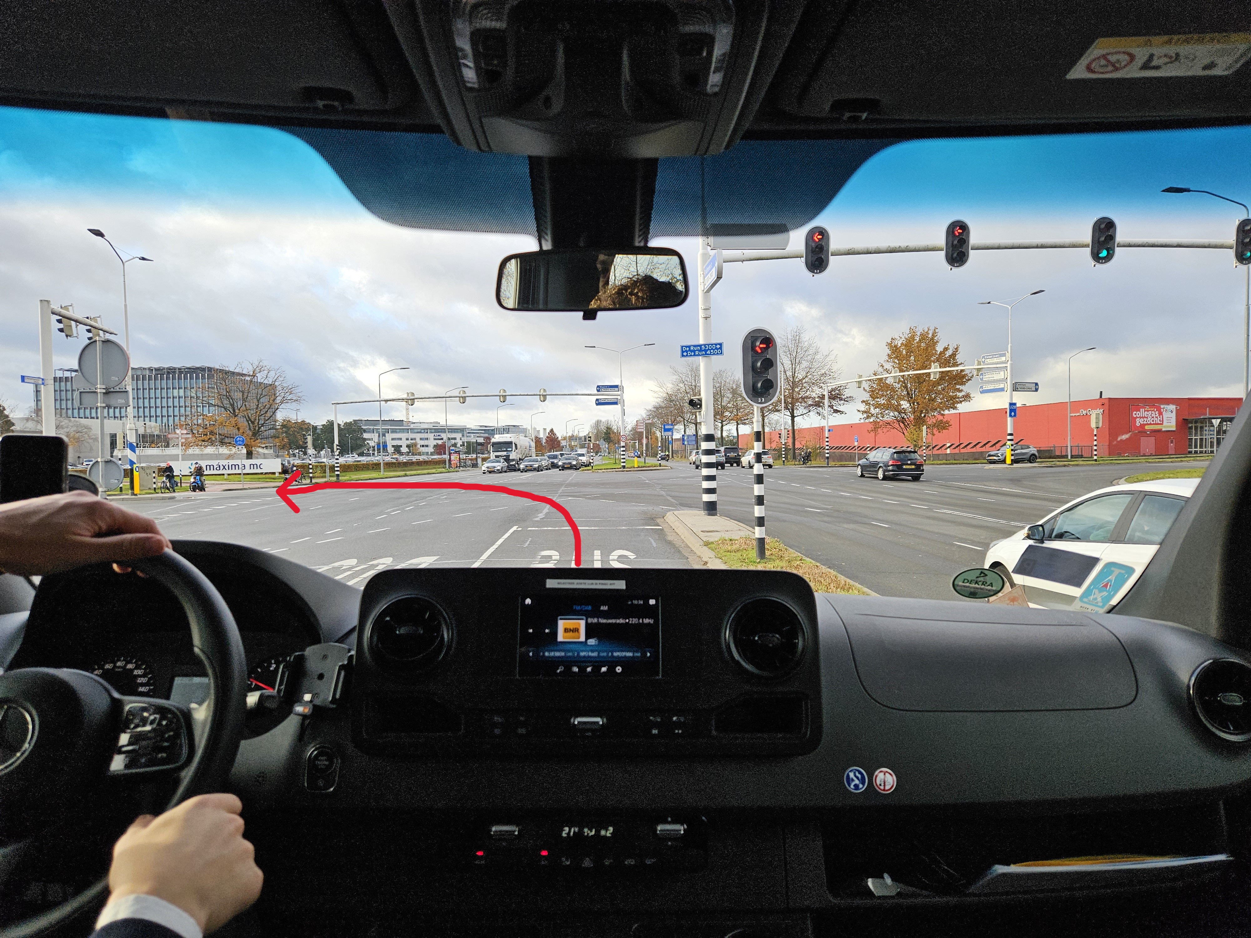 - Het voorsorteren bij het afrijden van de ASML campus.