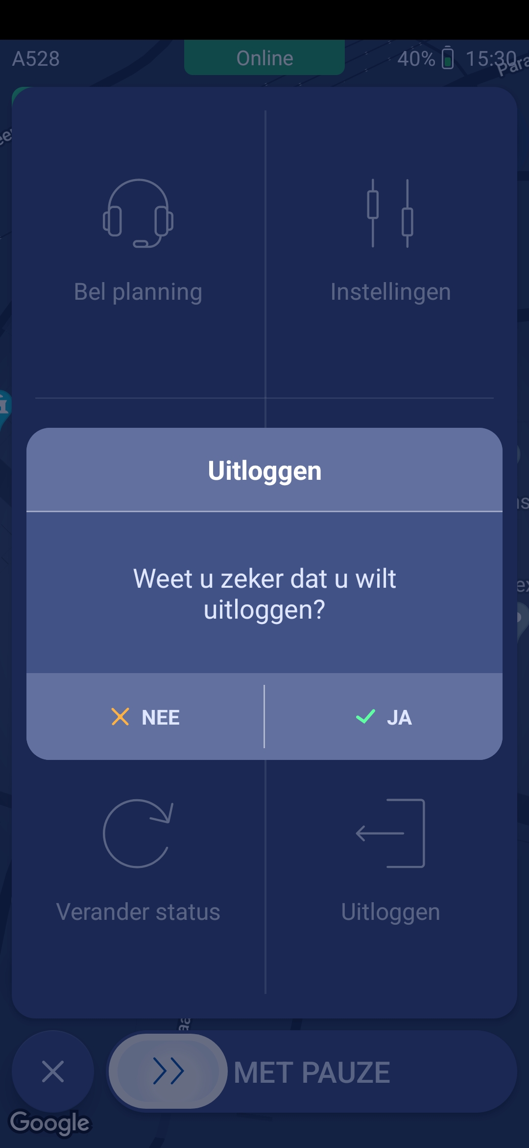 - Klik hier op "JA", je wordt nu uitgelogd en de app zal zichzelf afsluiten.