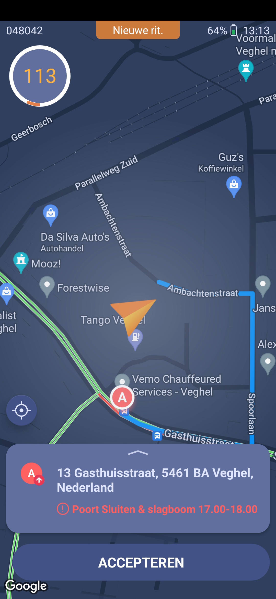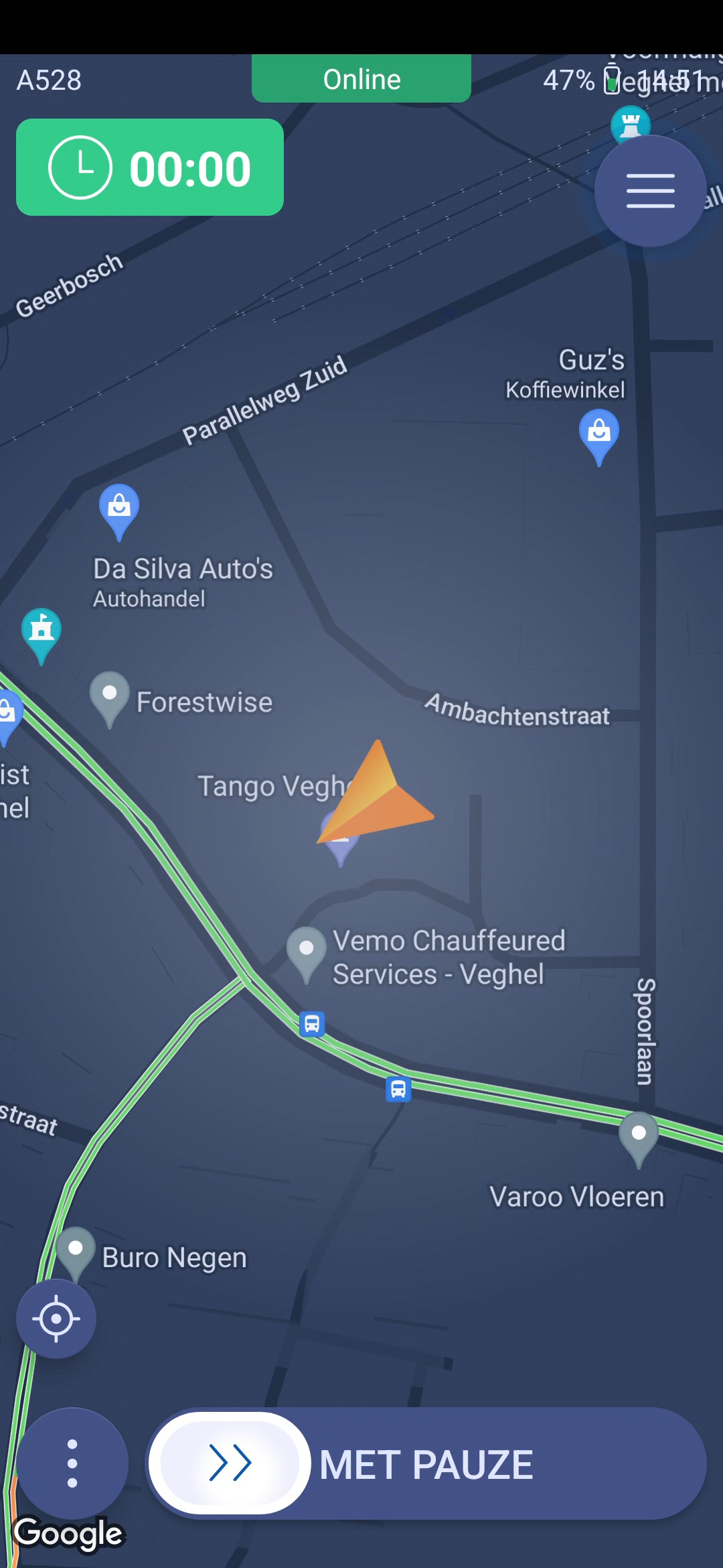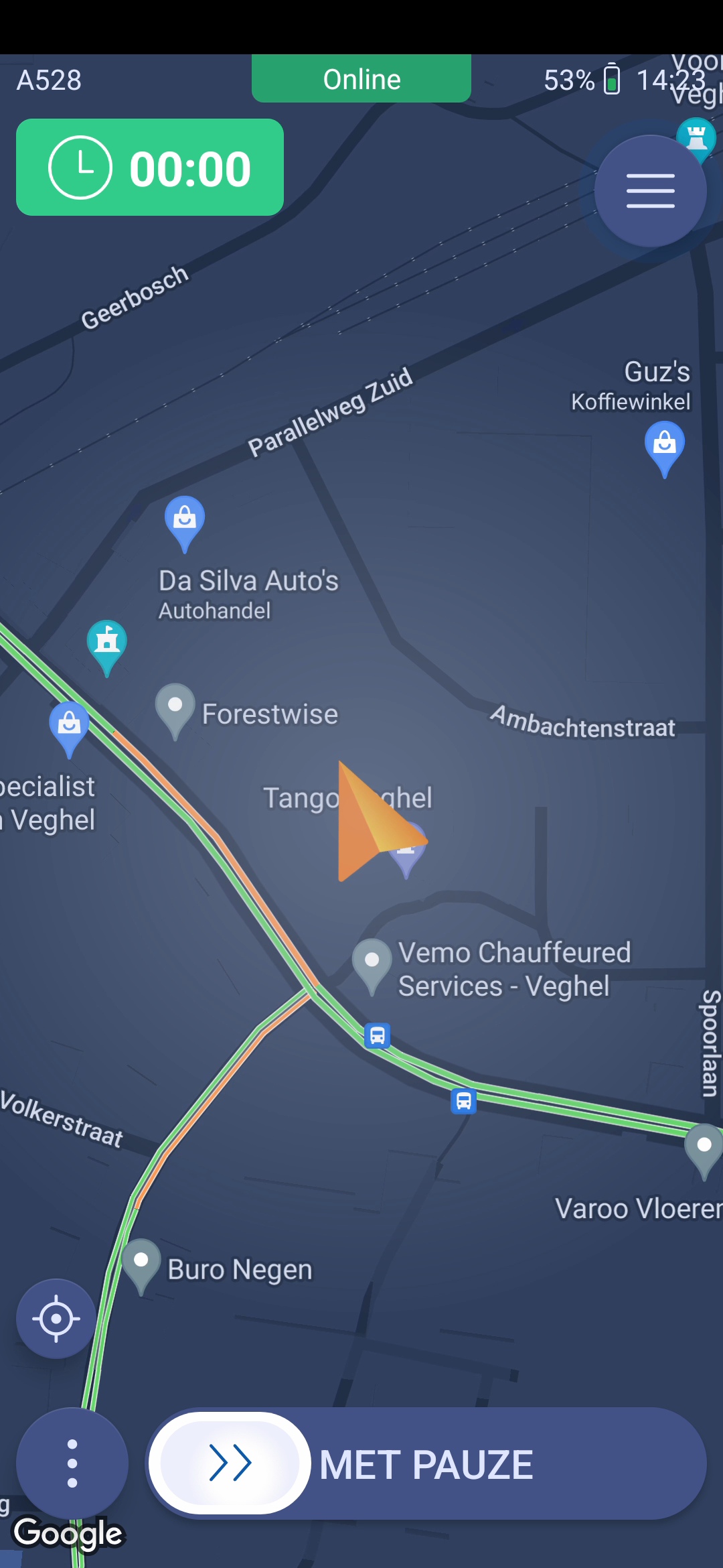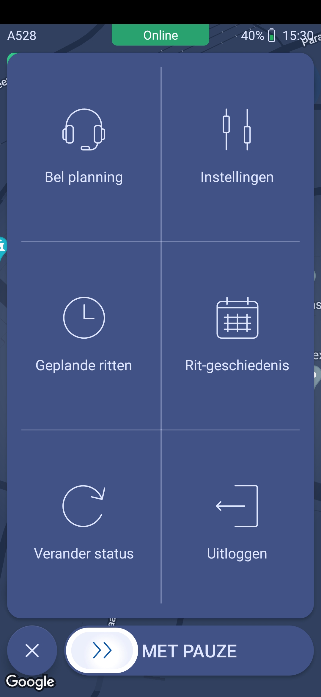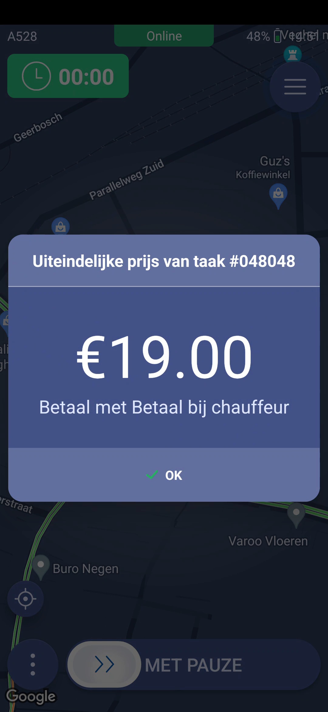 - Klik op "ACCEPTEREN" om de rit te accepteren en te beginnen, je ziet het volgende scherm: