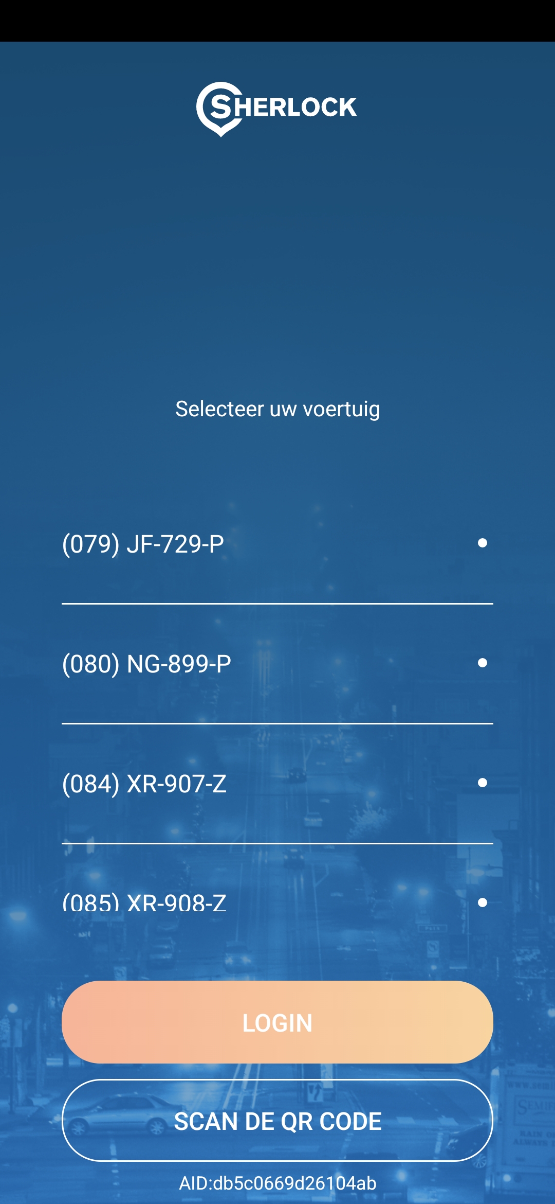 - Selecteer hier het voertuig waarmee je gaat werken en klik op "LOGIN", je ziet het volgende scherm: