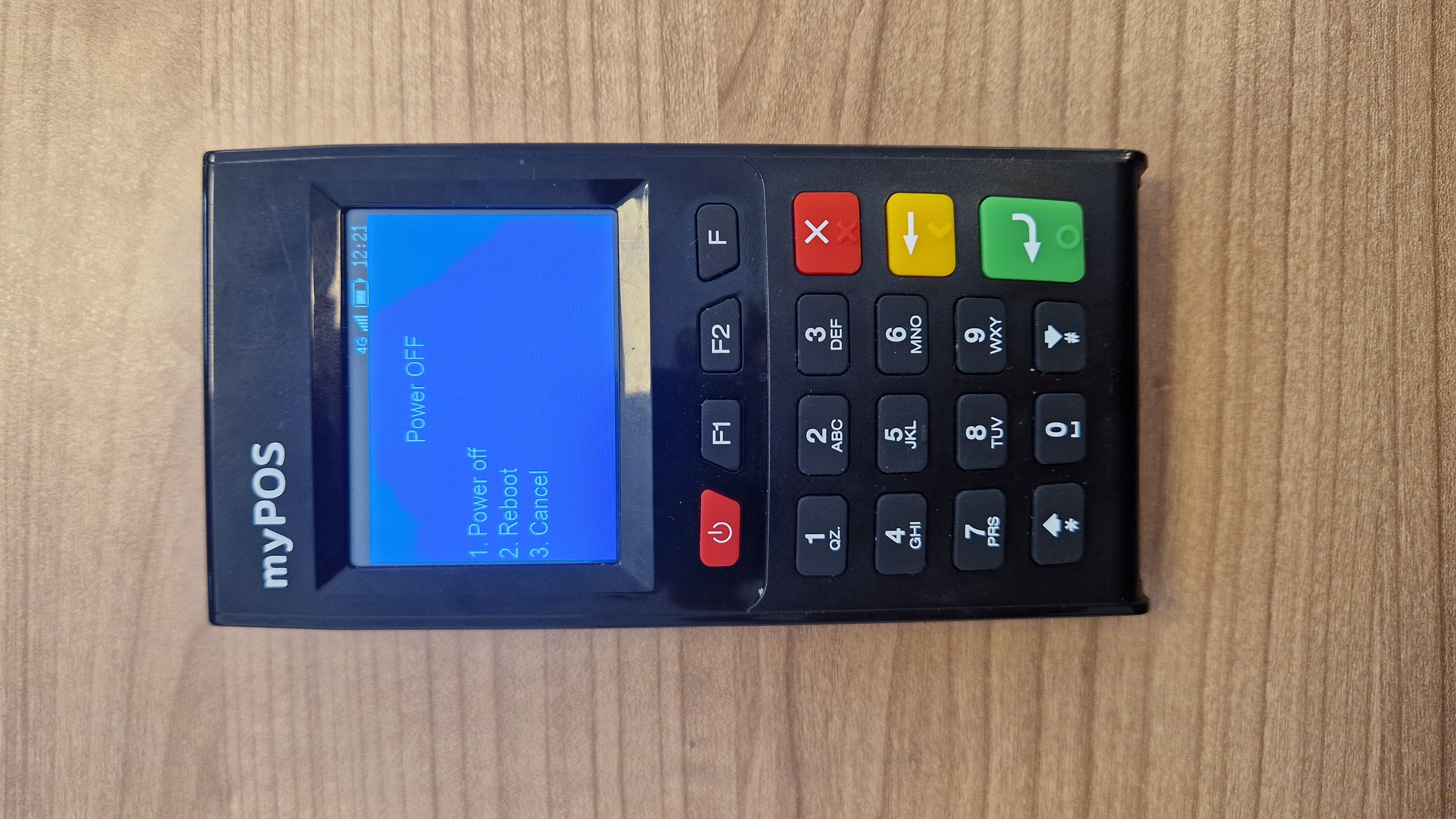- Druk op "1" en het pinapparaat zal uit gaan.