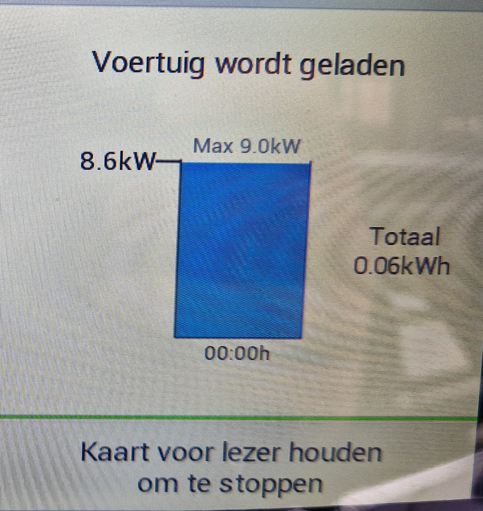 Voertuig is opgeladen (wanneer dit scherm op de paal staat en er een voertuig aan hangt):